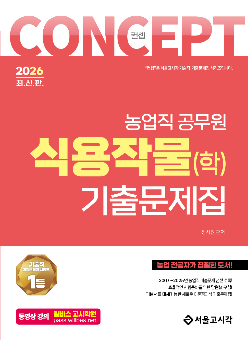 컨셉 식용작물학 기출문제집은 지난 19년간 공개된 국가직 7ㆍ9급, 지방직 7ㆍ9급 공무원 시험문제 1,000여 문제로 구성하여 컨셉 식용작물학 기본서의 단원별로 편성하였습니다.