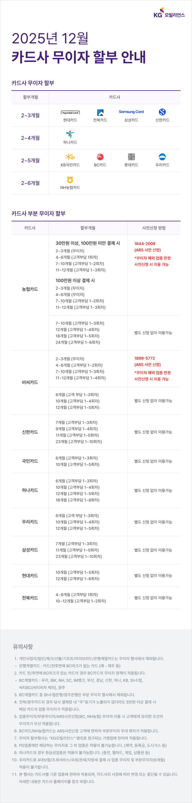 신용카드 12월 무이자 할부 안내