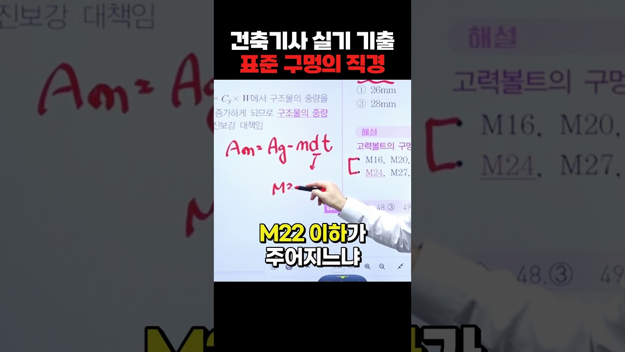 2026 건축기사 안남식 쌤의 표준 구멍의 직경
