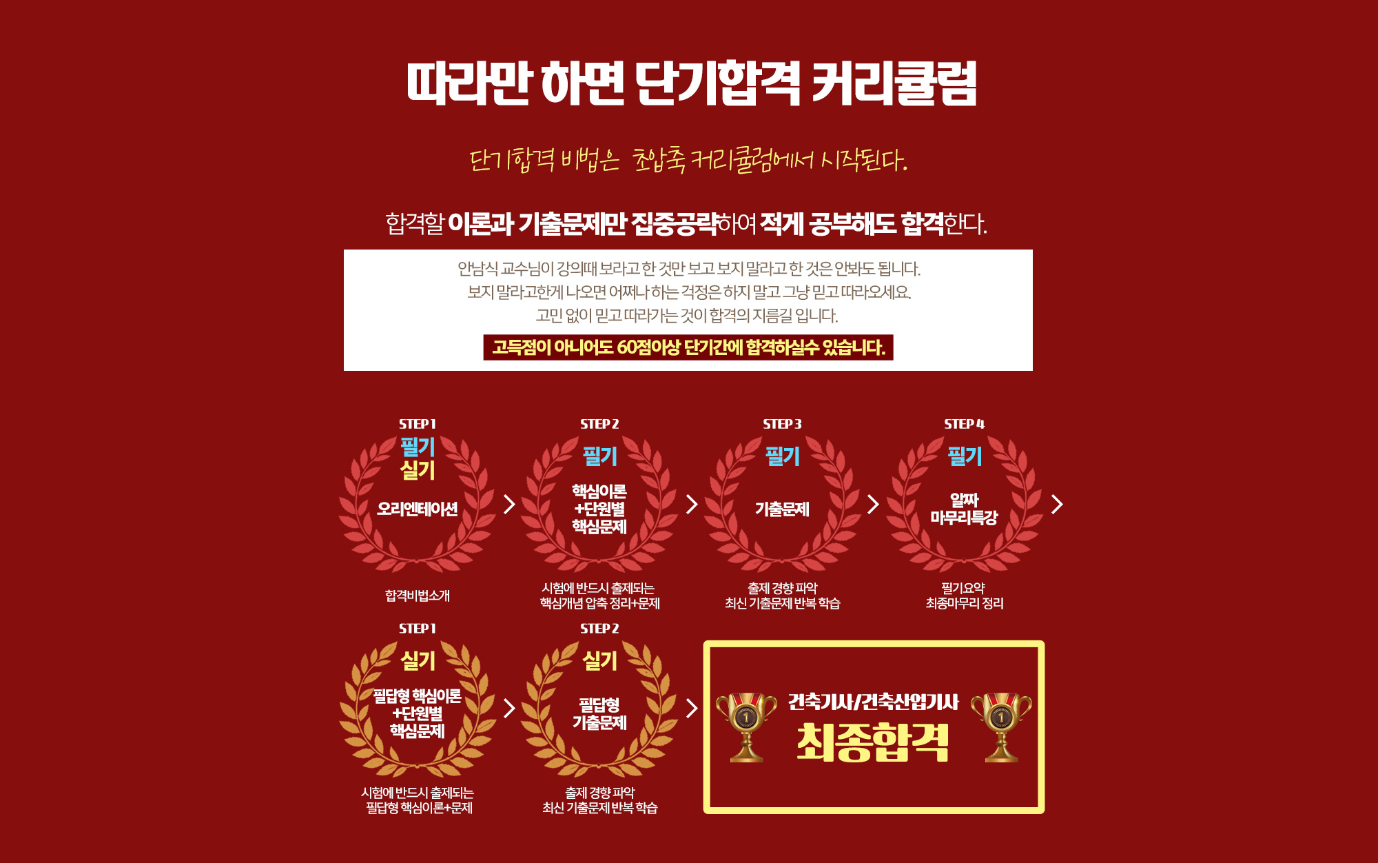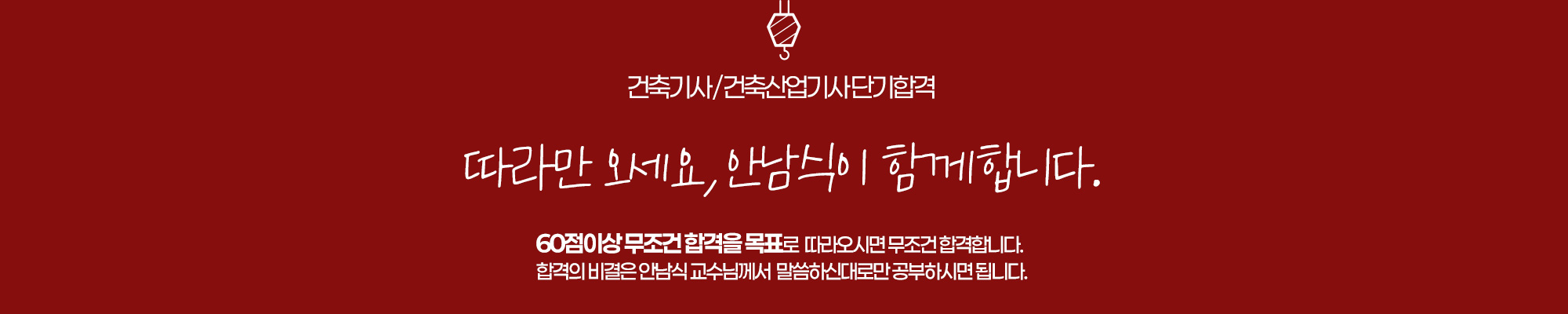 건축기사를 준비하시는 분들께 안남식 교수님의 강의를 자신 있게 추천드립니다. 혼자 하는 공부보다 훨씬 효율적이고, 공부가 재미있어질 겁니다