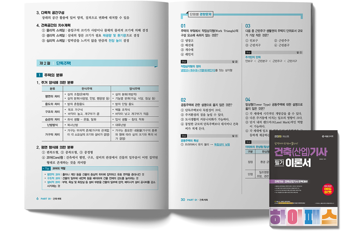 건축 비전공자였습니다만 현장경험을 바탕으로 건축기사 취득을 염원했지만 먼저 산업기사 취득 후 취득하자는 생각으로 필기 교재를 먼저 구입하였습니다.