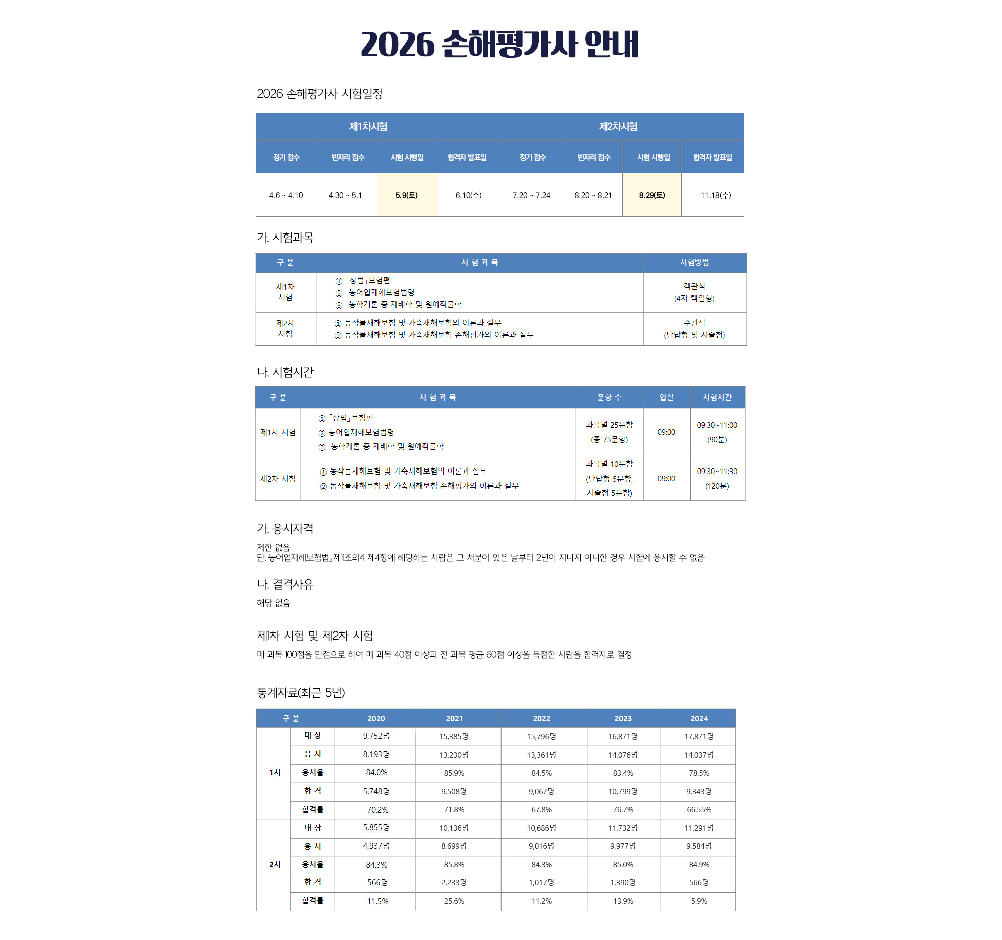 2026년 손해평가사 일정