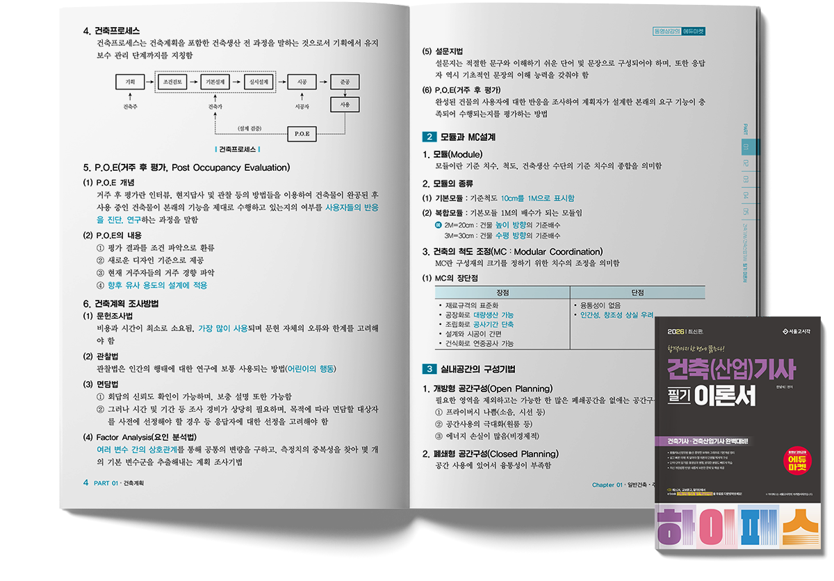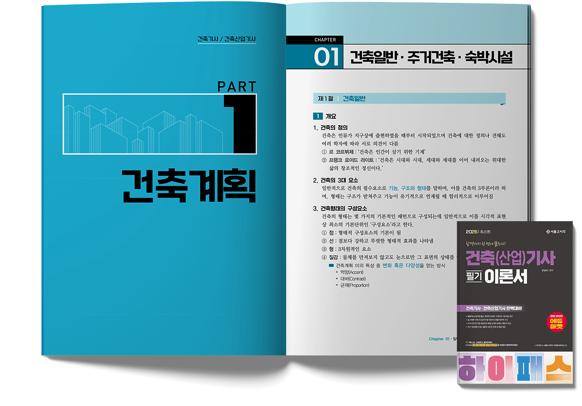 건축 비전공자였습니다만 현장경험을 바탕으로 건축기사 취득을 염원했지만 먼저 산업기사 취득 후 취득하자는 생각으로 필기 교재를 먼저 구입하였습니다.